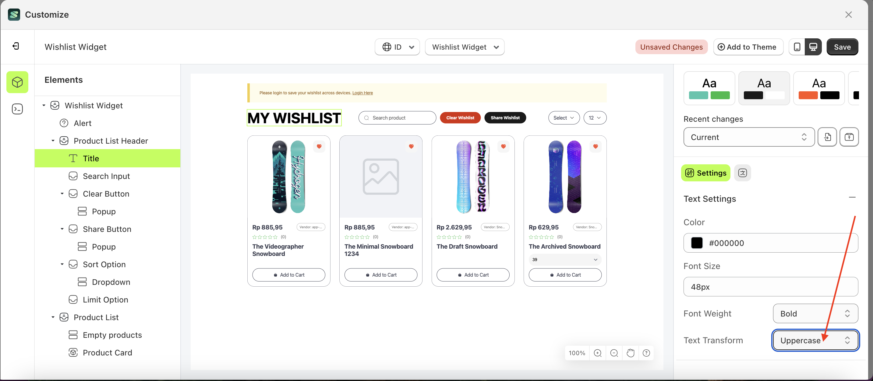 - Note: The text transform format can be None, Capitalize, Uppercase, Lowercase..
