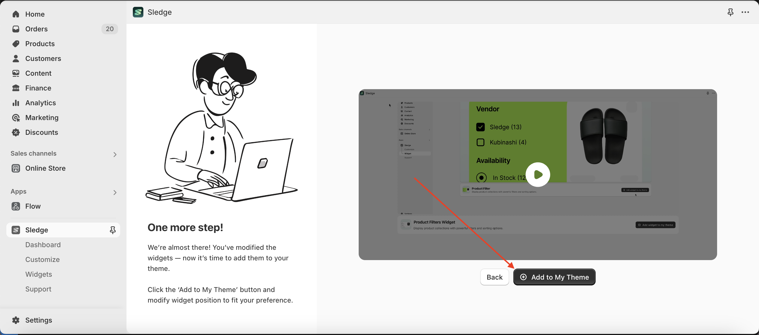 - Click Add to My Theme to integrate the widget into your theme